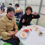 今年のバスツアーは総勢110名と昨年に続き多くの皆様に参加していただきました。いちご狩り(あすかルビー)のあとホテル日航関西空港で飲茶バイキングの昼食、月化粧ファクトリーで大阪名物みるく饅頭月化粧の工場見学をしたあと、できたてのみるく饅頭の試食があり楽しいひとときを過ごしました。